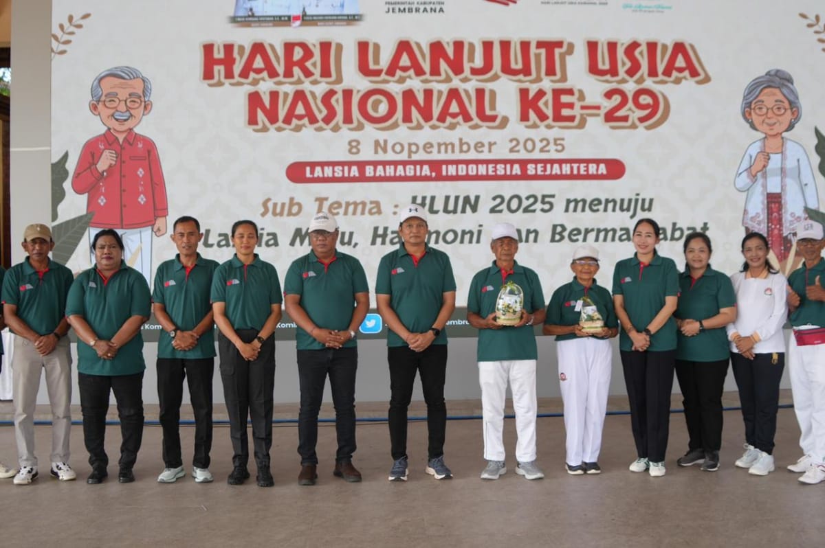 SUARAIKAWANGI, Jembrana – Pemerintah Kabupaten (Pemkab) Jembrana melalui Dinas Kesehatan menggelar peringatan Hari Lanjut Usia Nasional (HLUN) ke-29 yang dipadukan dengan peringatan Hari Ulang Tahun Korps Pegawai Republik Indonesia (HUT Korpri) Tahun 2025. Kegiatan tersebut dipusatkan di Gedung Kesenian Ir. Soekarno, Sabtu (8/11/2025), berlangsung meriah yang diikuti ratusan Lansia dari berbagai kecamatan.