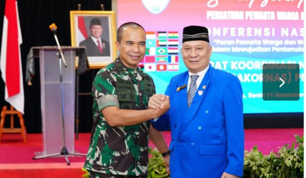SUARAIKAWANGI, Jakarta – Kepala Pusat Penerangan (Kapuspen) TNI Mayjen TNI Hariyanto mewakili Panglima TNI menghadiri acara Konferensi Nasional Pewarta Warga dan Warganet (Netizen). Acara tersebut diselenggarakan oleh Dewan Pengurus Nasional Persatuan Pewarta Warga Indonesia (PPWI), bertempat di Ballroom Menara Peninsula Hotel Jakarta, Jl. Letjen S. Parman, Slipi Jakarta Barat, Senin (11/11/2024).