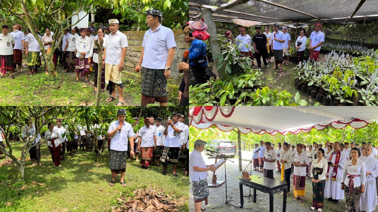 SUARAIWANGI, Jembrana – Pemerintah Kabupaten (Pemkab) Jembrana mengawali Tahun 2026 dengan cara yang tak biasa, Bupati Jembrana I Made Kembang Hartawan melantik dan mengambil sumpah jabatan sejumlah Pejabat Tinggi Pratama, Administrator dan Pengawas, bertempat di tengah kebun kakao milik I Ketut Sudomo, di Banjar (dusun) Moding, Desa Candikusuma, Kecamatan Melaya, Kabupaten Jembrana, Bali, Jumat (2/1/2026). Kebun kakao dipilih sebagai simbol agar pejabat yang dilantik tidak terlepas dari realitas kehidupan masyarakat di Jembrana.