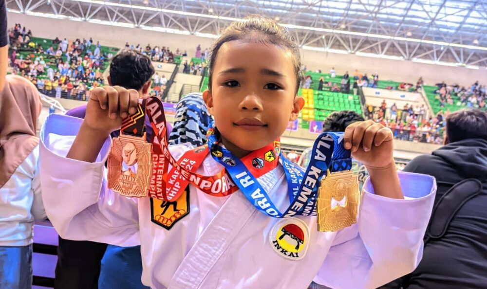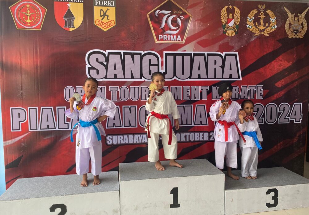 SUARAIKAWANGI, Surabaya – Dalam rangka memperingati HUT TNI ke-79, Panglima TNI menggelar “Open Tournament Karate”, yang berlangsung di GOR Unesa Surabaya, 17-20 Oktober 2024 lalu. Dalam turnamen yang memiliki tingkat prestisius tinggi ini atlet karate asal Kota Trenggalek atas nama Arasely Salsabela Mulven meraih Juara II Kelas Kata Perorangan Pra Usia Dini Putri.