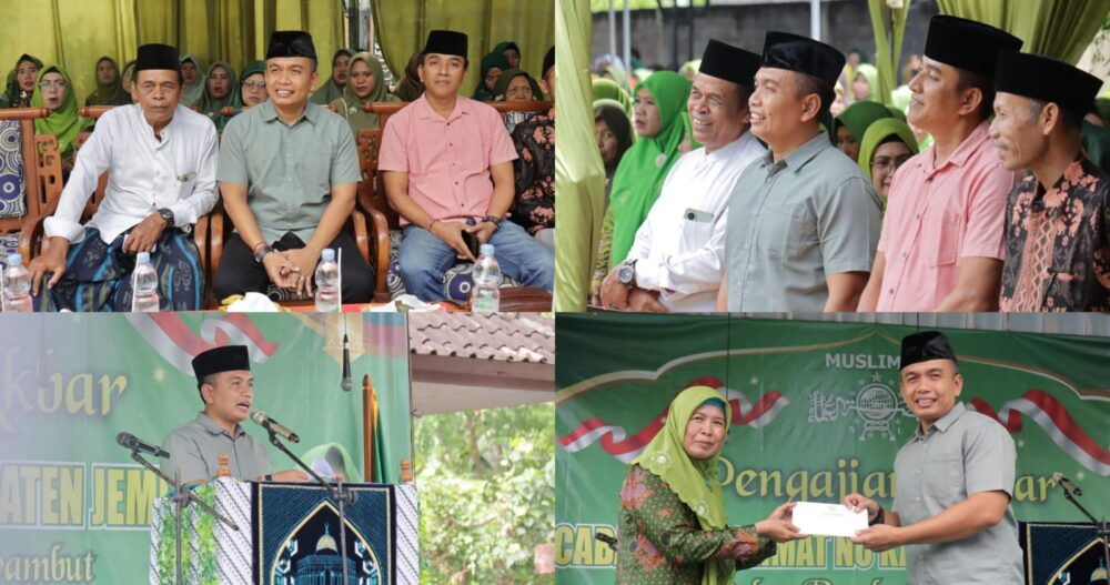 SUARAIKAWANGI, Jembrana  Wakil Bupati (Wabup) Jembrana I Gede Ngurah Patriana Krisna mewakili Bupati Jembrana menghadiri Pengajian Akbar yang diselenggarakan oleh Muslimat Nahdlatul Ulama (NU) Anak Cabang Jembrana di Masjid Tasdiqal Ummah, Banjar (dusun) Sabo, Desa Air Kuning, Jembrana, Minggu (23/2/2025). Kegiatan tersebut telah menjadi momen refleksi yang sangat berarti terkait sejarah panjang NU sebagai organisasi Islam terbesar di Indonesia.