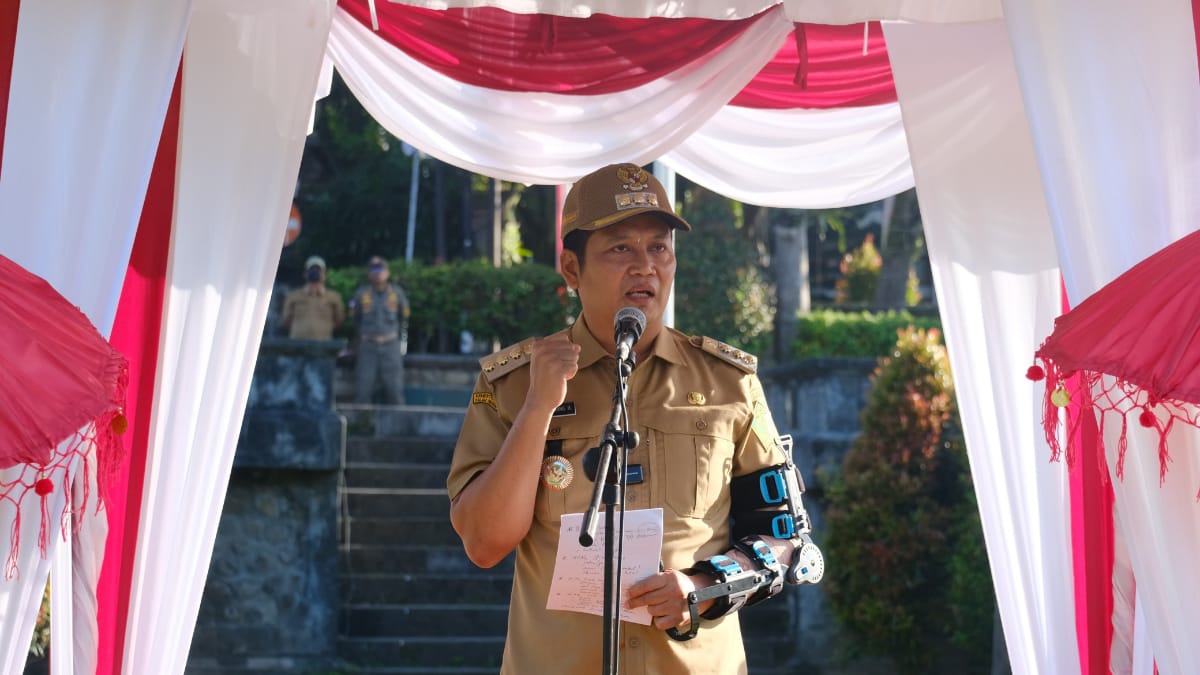 SUARAIKAWANGI, Jembrana – Bupati Jembrana I Made Kembang Hartawan memimpin apel rutin bagi ASN dan Non ASN di Lingkungan Pemerintah Kabupaten Jembrana, digelar di halaman Kantor Bupati Jembrana, Senin (1/9/2025). Apel ini menjadi momen penting bagi Bupati Kembang untuk menyampaikan arahan strategis kepada seluruh jajaran aparatur sipil negara.