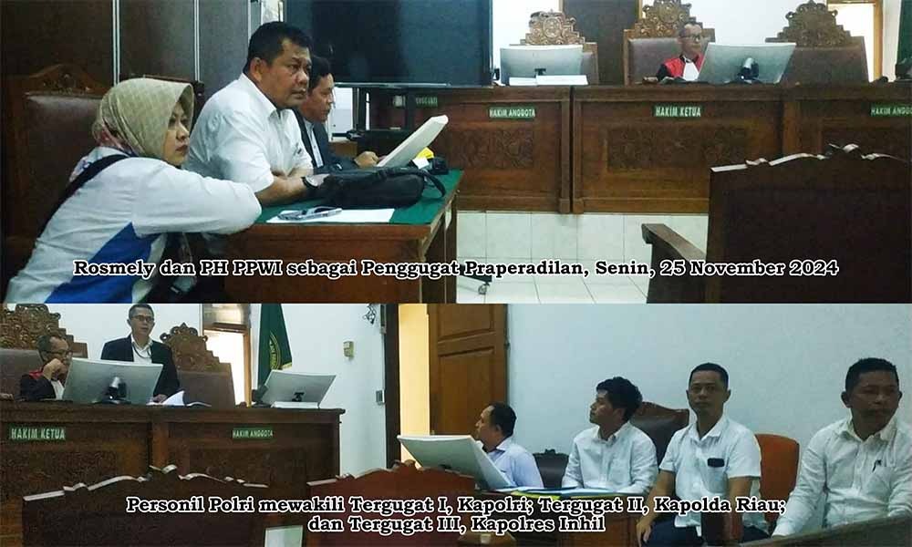 Hal itu disampaikan Penasehat Hukum PPWI, Advokat Ujang Kosasih, S.H., kepada media ini usai menghadiri sidang Prapid yang dilaksanakan di Ruang Dr. Mr. Kusumah Atmaja, PN Jaksel. “Berdasarkan pertimbangan bahwa telah terjadi proses perdamaian antara pelapor Saruji dengan klien kami, Rosmely, melalui restorative justice beberapa waktu lalu, maka Tim PH dan klien kami, Rosmely, yang didukung oleh jajaran pengurus pusat PPWI, pada sidang hari pertama tadi, kami nyatakan mencabut gugatan Prapid terhadap Kapolri, Kapolda Riau, dan Kapolres Inhil, yang kami daftarkan pada tanggal 01 November 2024 lalu,” jelas advokat senior kelahiran Banten itu sambil menambahkan bahwa sudah tidak ada alasan signifikan untuk melanjutkan gugatan Prapid tersebut.