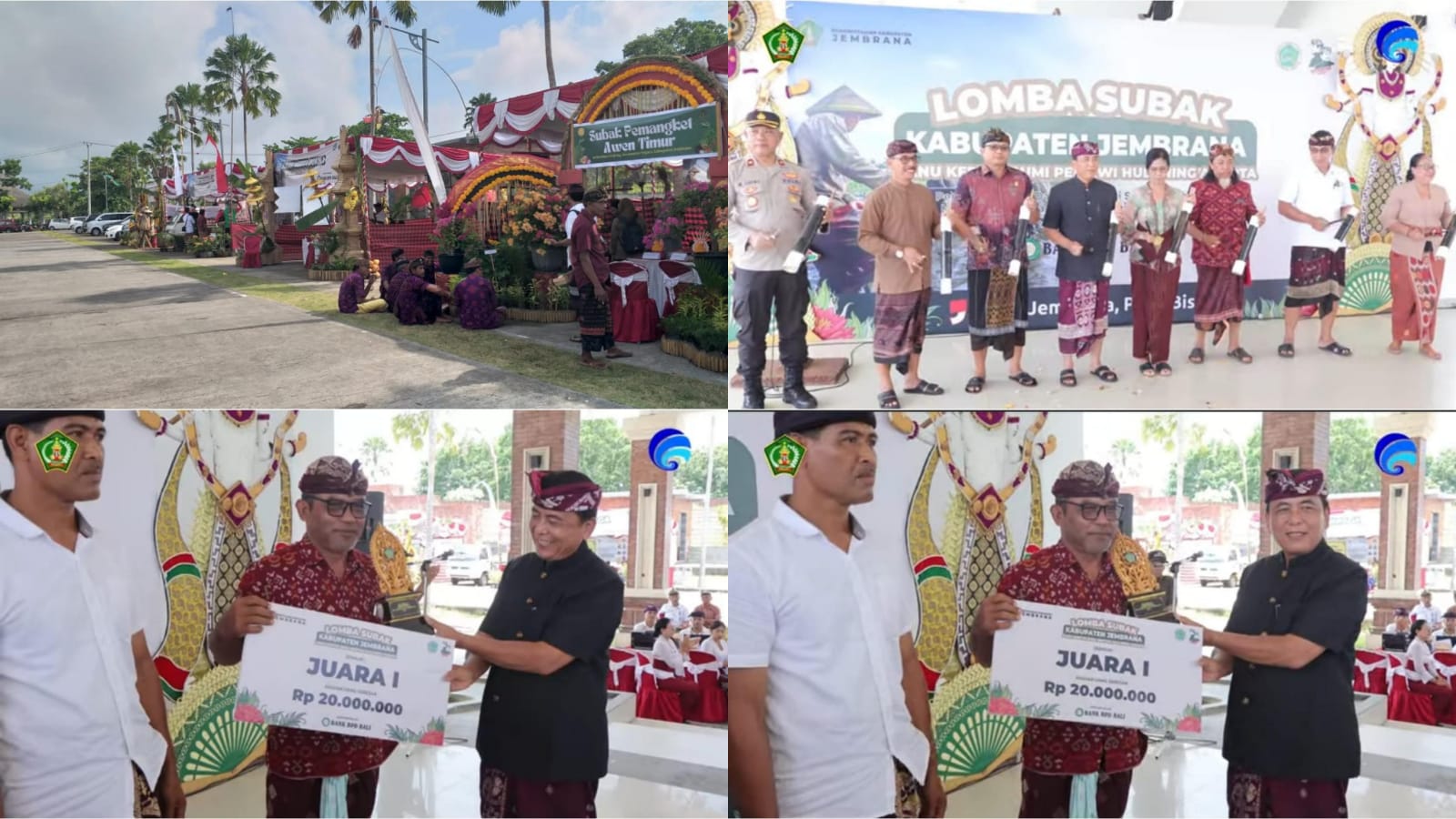 SUARAIKAWANGI, Jembrana – Pemerintah Kabupaten (Pemkab) Jembrana di bawah kepemimpinan Pasangan Bupati I Made Kembang Hartawan dan Wabup I Gede Ngurah Patriana Krisna memberikan hadiah berupa uang dan piagam penghargaan kepada pemenang lomba Subak se-Kabupaten Jembrana. Hadiah dan piagam penghargaan tersebut diserahkan oleh Asisten II Bidang Perekonomian Dan Pembangunan Setda Jembrana I Gede Sujana yang mewakili Bupati Kembang Hartawan, bertempat di Anjungan Cerdas Rambutsiwi, Jumat (31/10/2025).